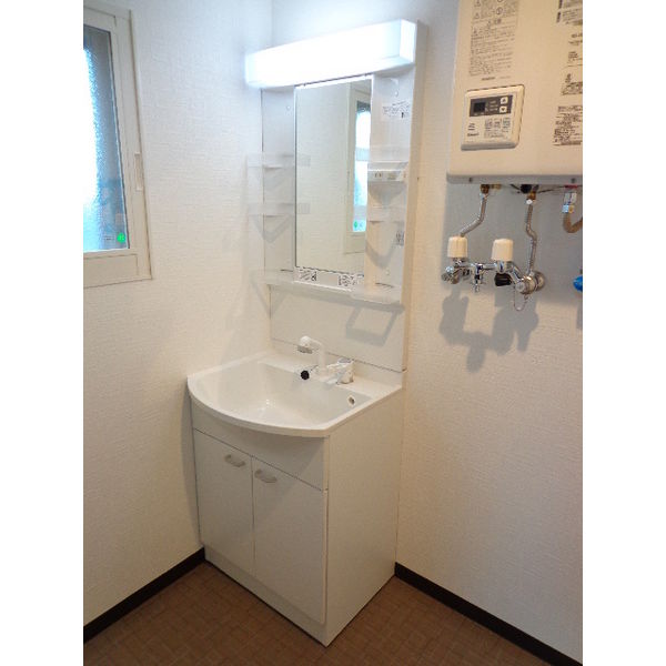 - 風呂(ユニットバス)、トイレ(水洗)、洗面台(独立)、暖房便座、シャワートイレ、洗髪洗面化粧台、バス・トイレ別、洗濯機置場(室内)