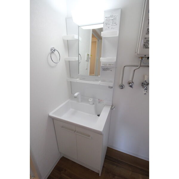 - 風呂(ユニットバス)、トイレ(水洗)、洗面台(独立)、浴室乾燥機、暖房便座、シャワートイレ、洗髪洗面化粧台、バス・トイレ別、洗濯機置場(室内)