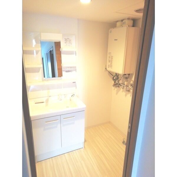- 風呂(ユニットバス)、トイレ(水洗)、洗面台(独立)、浴室乾燥機、暖房便座、シャワートイレ、追い焚き、洗髪洗面化粧台、バス・トイレ別、洗濯機置場(室内)