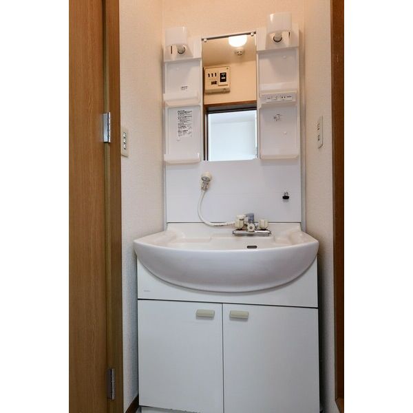 - 風呂(ユニットバス)、トイレ(水洗)、洗面台(独立)、洗髪洗面化粧台、バス・トイレ別、洗濯機置場(室内)