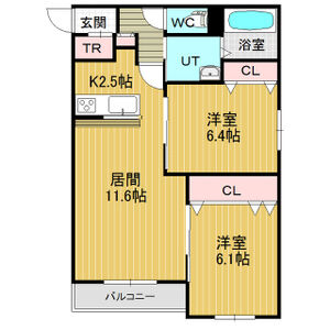 L11.6 × K2.5 × 洋室6.4 × 洋室6.1 - 階数