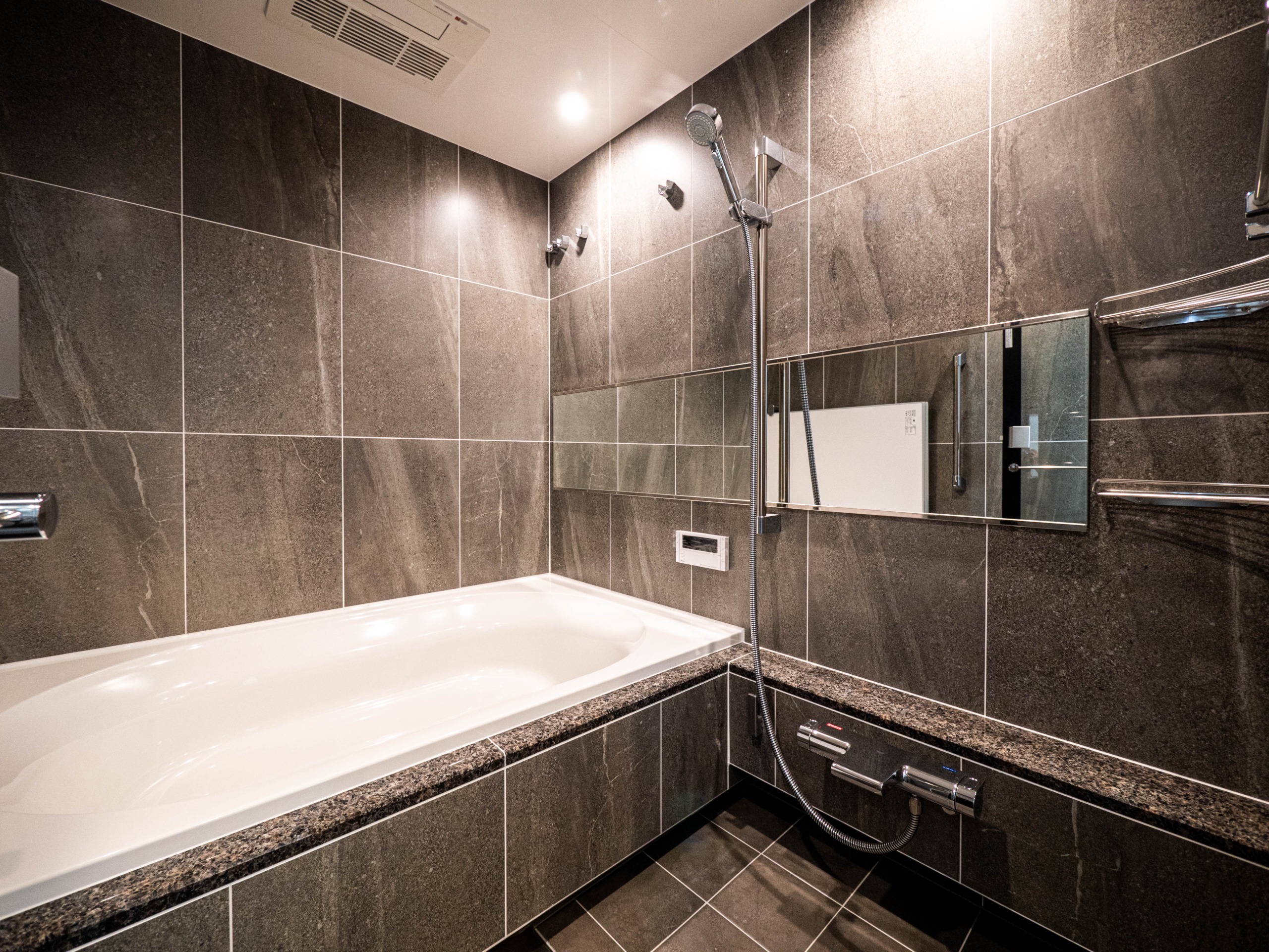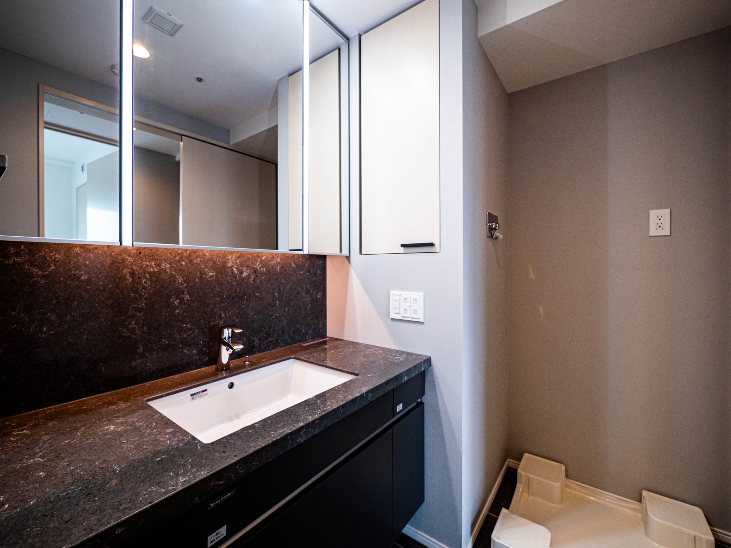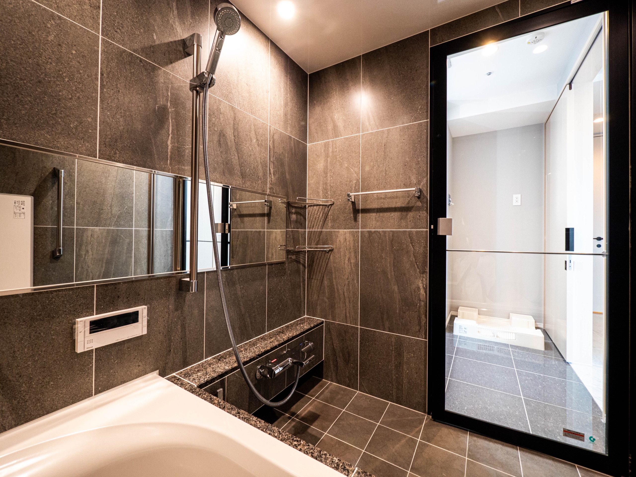 風呂(ユニットバス)、トイレ(水洗)、洗面台(独立)、浴室乾燥機、シャワートイレ、追い焚き、バス・トイレ別、洗濯機置場(室内)