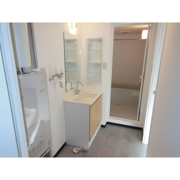 - 風呂(ユニットバス)、トイレ(水洗)、洗面台(独立)、追い焚き、洗髪洗面化粧台、バス・トイレ別、洗濯機置場(室内)