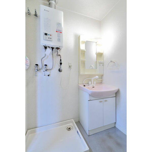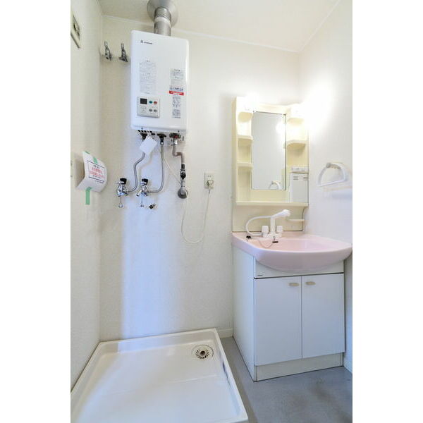 - 風呂(ユニットバス)、トイレ(水洗)、洗面台(浴室内)、洗髪洗面化粧台、バス・トイレ別、洗濯機置場(室内)