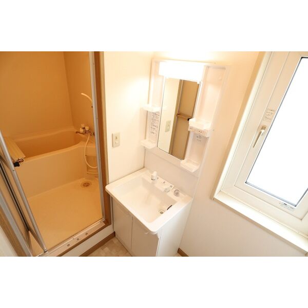 - 風呂(ユニットバス)、トイレ(水洗)、洗面台(独立)、洗髪洗面化粧台、バス・トイレ別、洗濯機置場(室内)