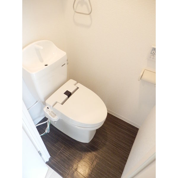 - 風呂(ユニットバス)、トイレ(水洗)、洗面台(独立)、暖房便座、シャワートイレ、洗髪洗面化粧台、バス・トイレ別、洗濯機置場(室内)